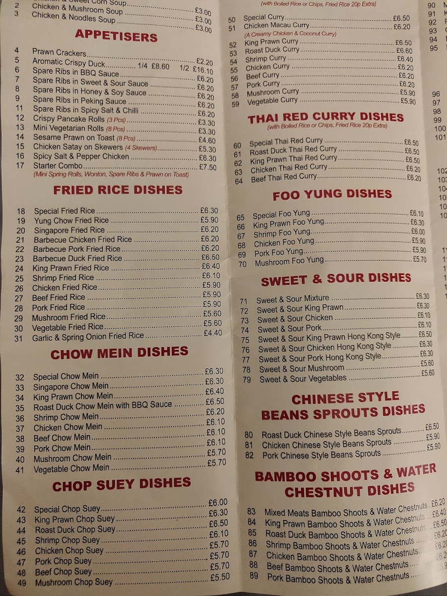 Great food fair price tasty. Plenty to eat with leftover for following day . Best Chinese takeaway in the area for me